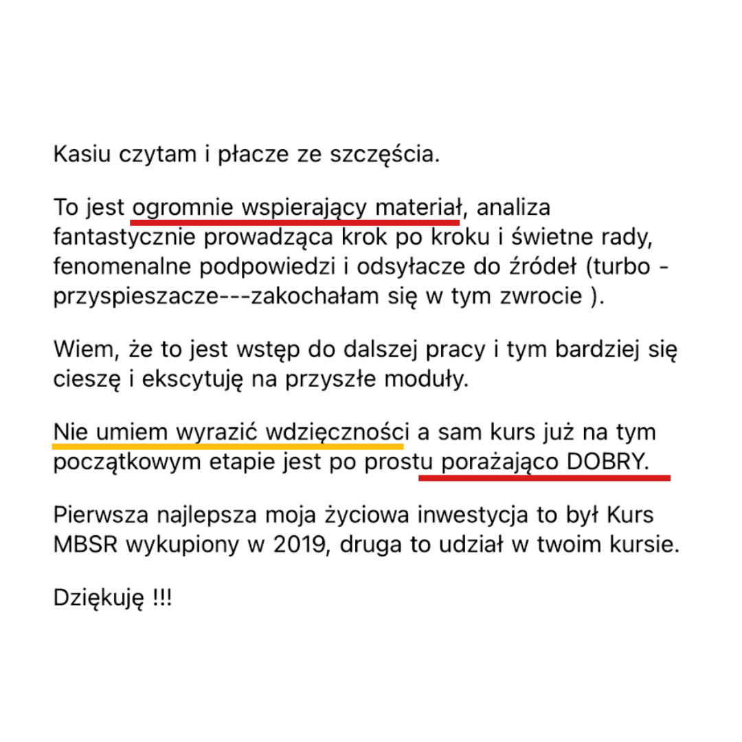 Nie chcę, żebyś zostawała w kursie z poczucia obowiązku albo lęku, że „szkoda pieniędzy”.